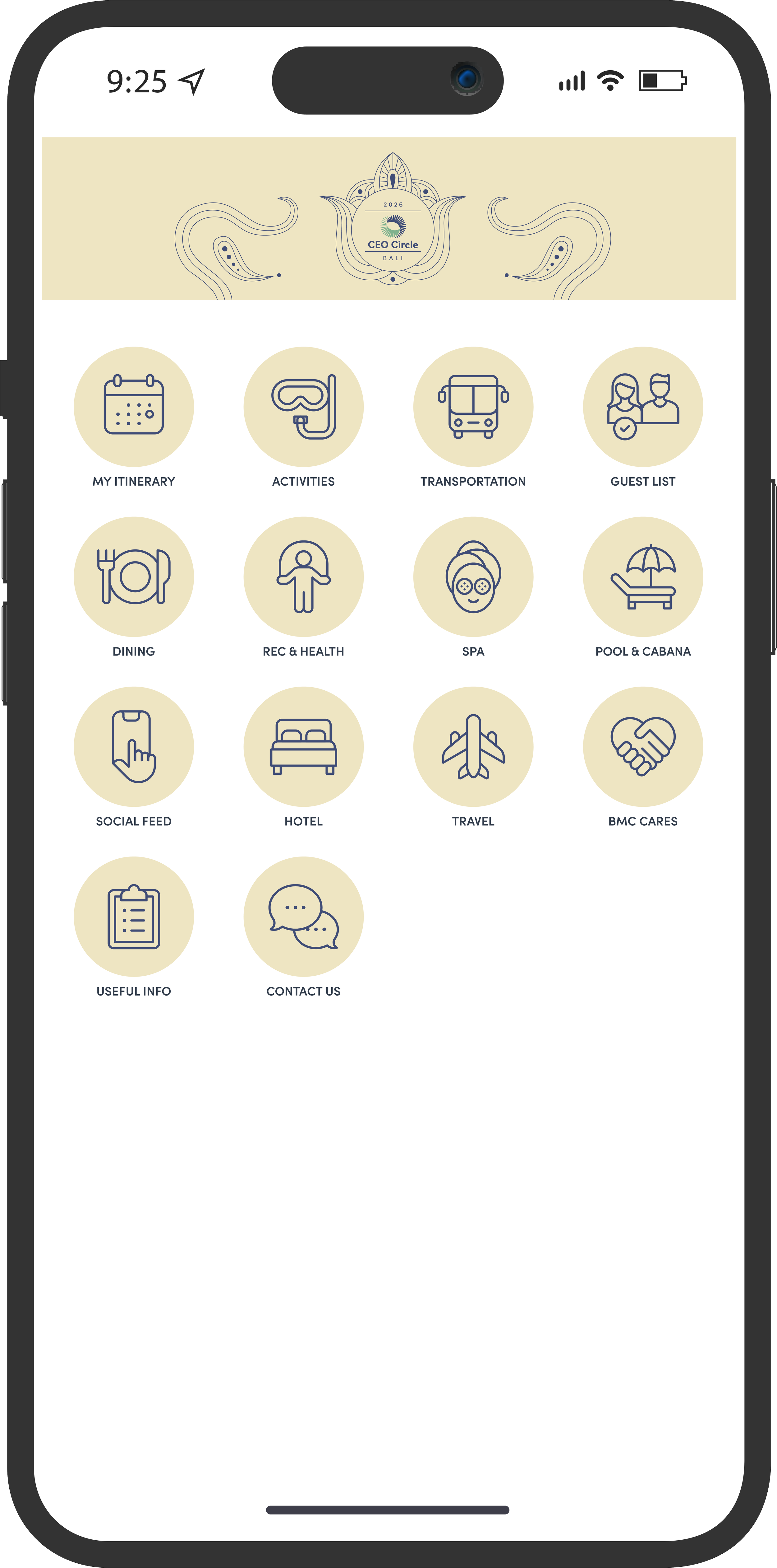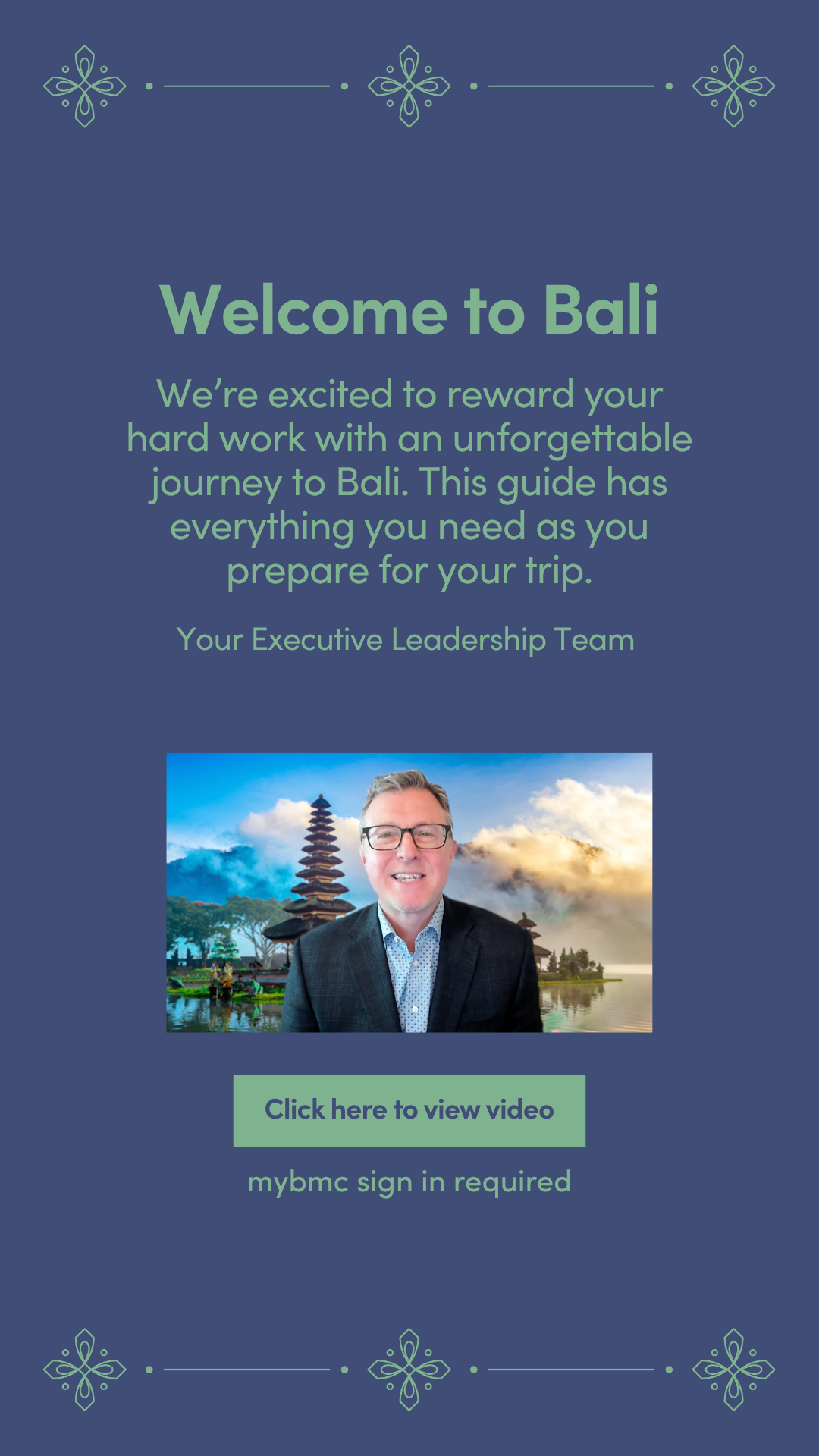 For the 2026 event in Bali, I developed the creative concept and design wrapper used across all event collateral. The visual system was inspired by Balinese cultural motifs, featuring ornate emblems and delicate iconography derived from the intricate patterns seen in traditional textiles and decorative crafts. The color palette reflects the vivid blues and warm hues of Bali’s coastal landscapes, creating a design language that connects the brand with the destination experience.